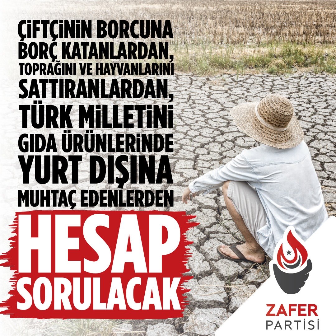 Tarım Bakanı sen ne iş yaparsın. Çiftçi, kuraklık yüzünden ürününü kaybetmek üzere. Türk Milletinin alınterini Suriyelilere ve yabancılara harcamayı bırakın. Çiftçiye destek olun. Bankalara teslim etmeyin. @zaferpartisi buna izin vermeyecek.
